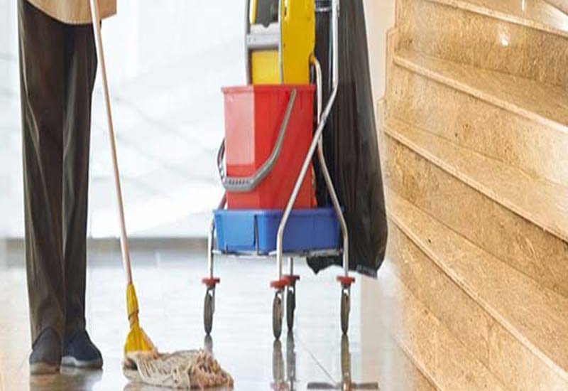 Merdiven ve trabzanların tozları temizlenmektedir.